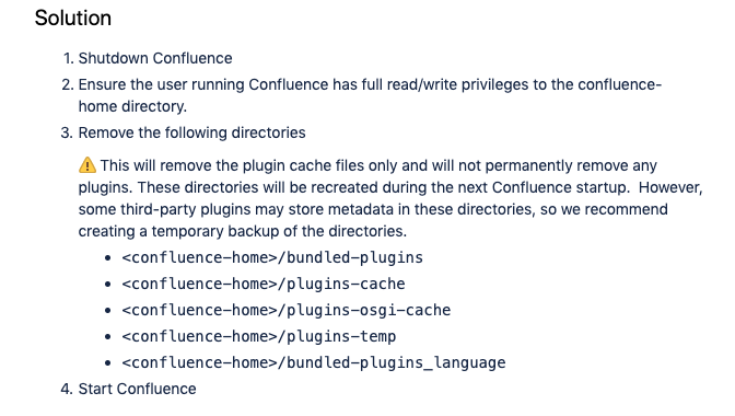 I am unable to start up our Confluence instance. Well, we get a 500 error on the home page after starting up at least. The error we see in the web page is: exception com.atlassian.util.concurrent.LazyReference$InitializationException: java.lang.NullPointer