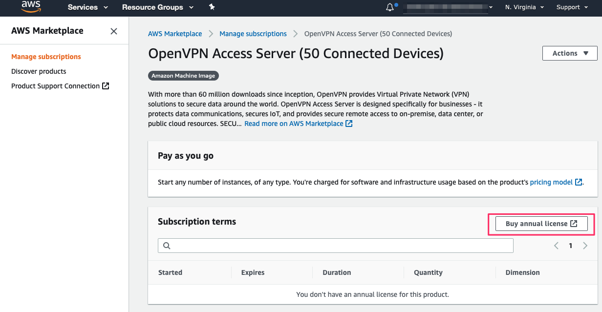 Select AMI for purchase license
