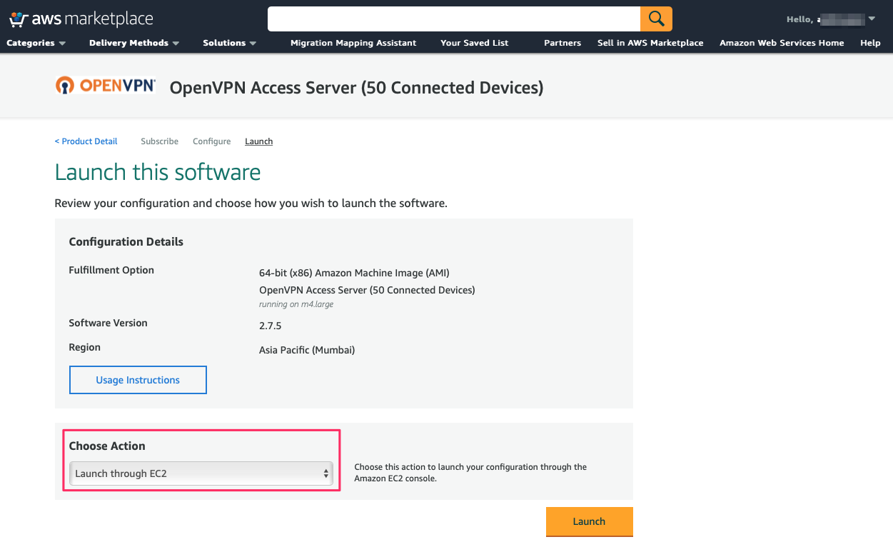 I choose 'Launch through EC2'. I need to set more details.