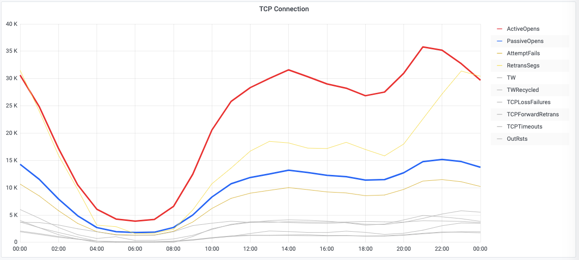 TCP 통계 지표를 24개만 모아서 보고 있는데 (1분마다 이전과 현재의 증가한 차이 값을 수집해서 추이를 봄)
