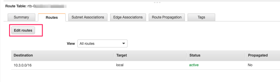 그리고 나머지 Route Table은 필요한 경우에 Edit routes를 이용해서 정보를 추가해줍니다.