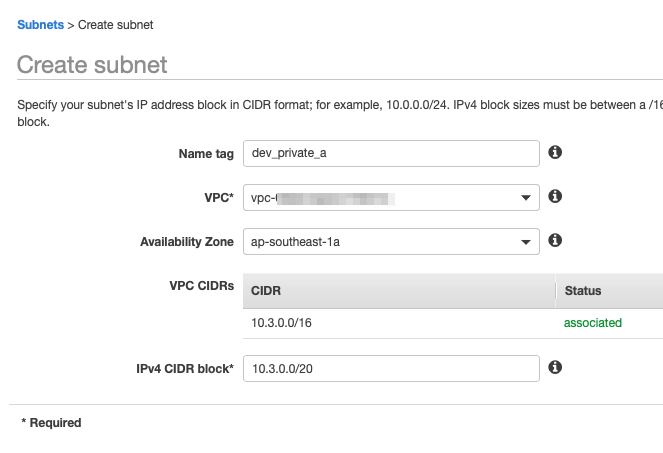- 10.3.0.0/20 (10.3.0.1 ~ 10.3.15.254)