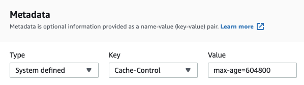 > aws s3 sync ./build s3://test-upload-bucket --metadata='{"Cache-Control":"max-age=300"}'