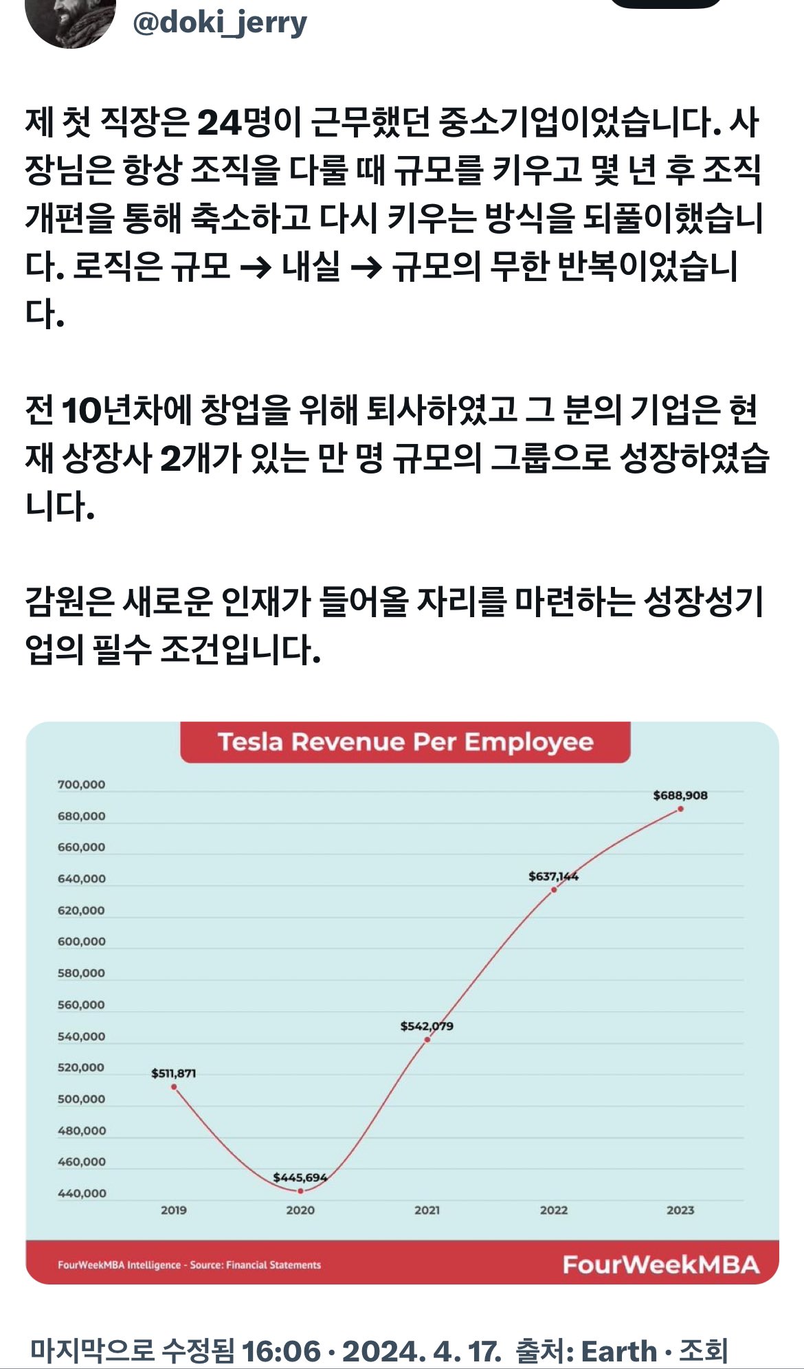 고급인력 30%가 많아지고 질이 좋아진다. - 조직개편을 통해 축소한다.