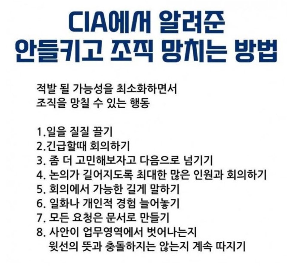 티 안나게 조직을 망치는 타입의 직원이 어디 숨어있는지 한번쯤 집고 넘어가야 할 항목들.