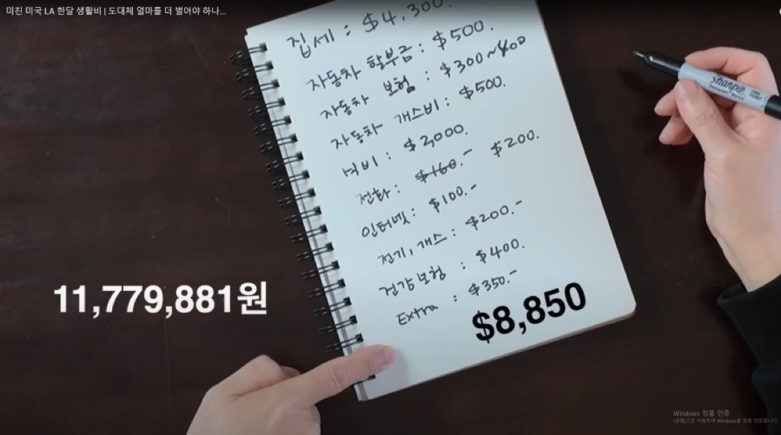 이 모든 지출을 합산하면 놀랍게도 월 8,850달러, 한화로 약 1,180만 원에 달합니다. 이는 많은 한국인들의 연봉에 맞먹는 금액입니다.