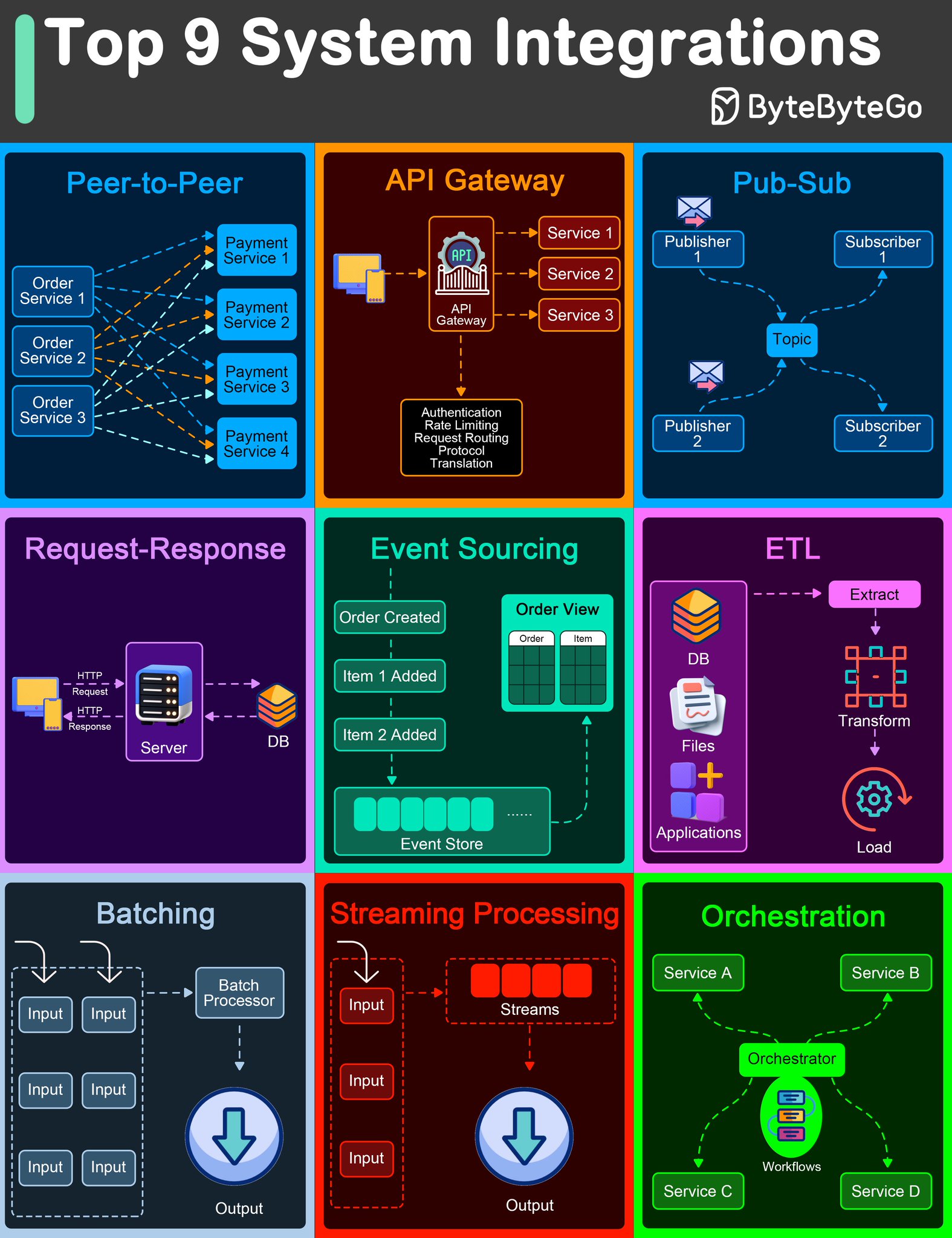 현대 기업은 더 이상 독립적으로 운영되는 고립된 시스템으로 정의되지 않습니다. 대신, 우리는 조직 경계를 넘어 데이터와 기능이 원활하게 흐를 수 있게 하는 완벽하게 연결된 아키텍처로의 패러다임 전환을 목격하고 있습니다. 이 9가지 통합 패턴은 수십 년간의 아키텍처 진화의 결정체를 나타냅니다.