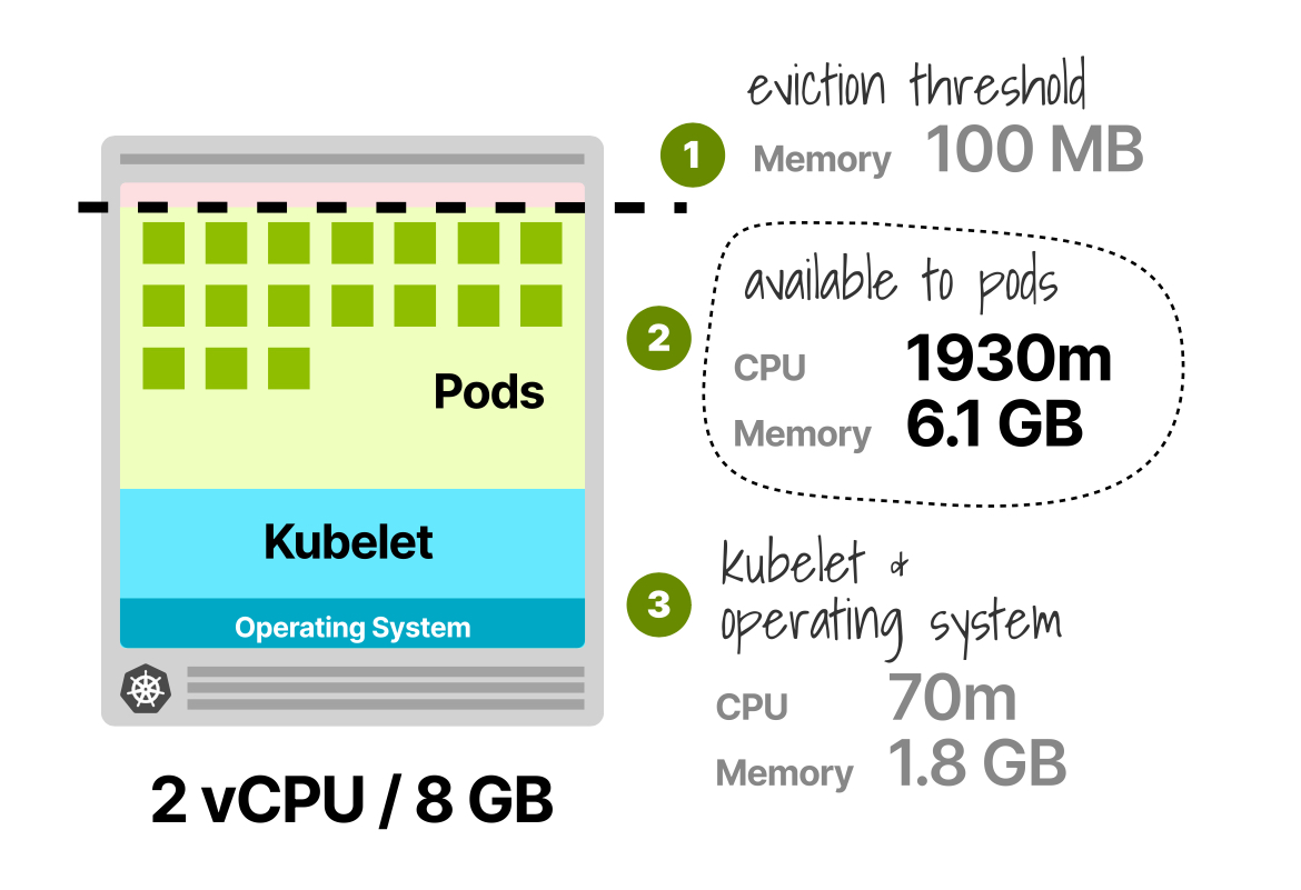 - kubelet과 운영 체제에 70m vCPU와 1.8GB 메모리