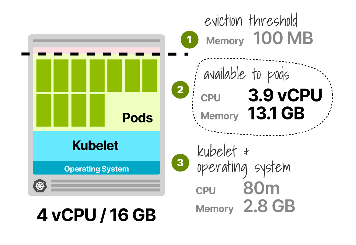 그렇다면 4 vCPU와 16GB 메모리를 갖춘 인스턴스가 이 워크로드를 수용할 수 있을까요? 이 질문에 답하기 위해서는 kubelet의 리소스 예약 메커니즘을 자세히 이해해야 합니다.